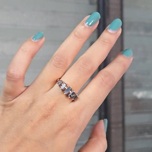 Salt and Pepper Baguette Diamond Ring in 10K Gold Minimalist Jewellery