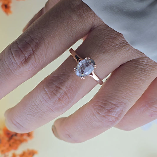 Oval Salt and Pepper Diamond Ring in 10K Gold – Unique Jewellery
