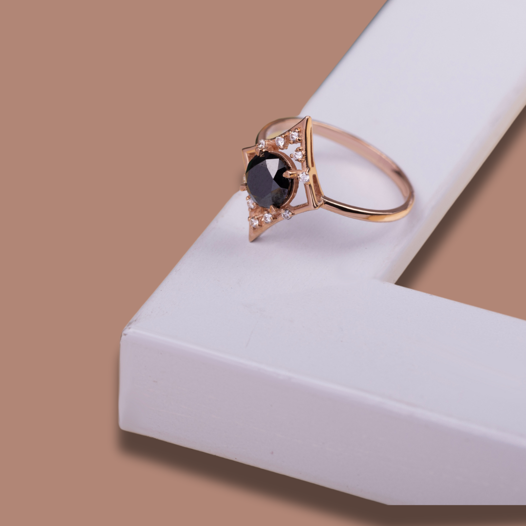 Kite Shaped Salt and Pepper Diamond Ring in 10K Rose Gold