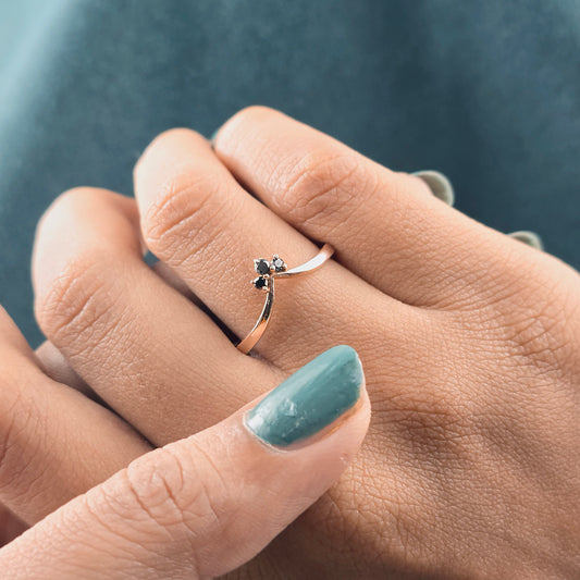 Black Diamond Tiara V Ring – Delicate Rose Gold Edge