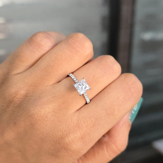1.20ct Princess Diamond Ring GIA Certified, 18K White Gold Engagement Ring, 0.33ct Round Accent Diamonds, Classic Bridal Ring