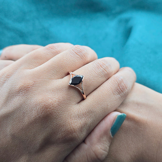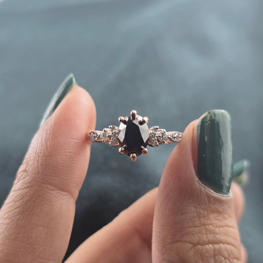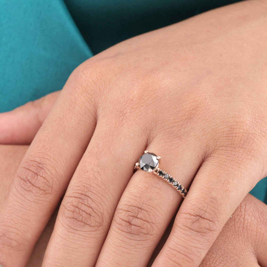 Rose Gold Black Diamond Ring – Elegant Round Cut Design