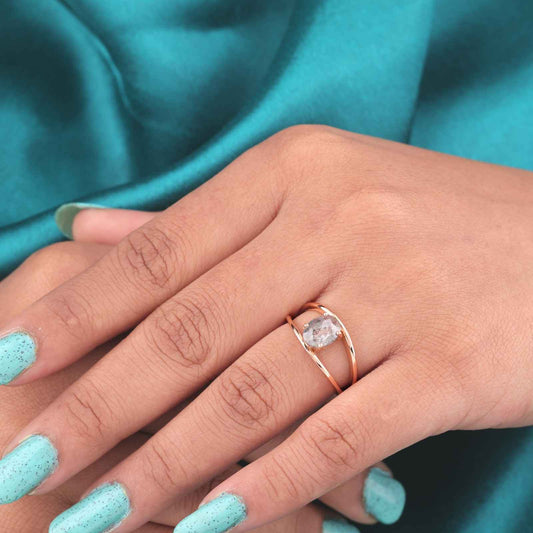 Rose Gold Open Band Ring – Oval Salt & Pepper Crystal