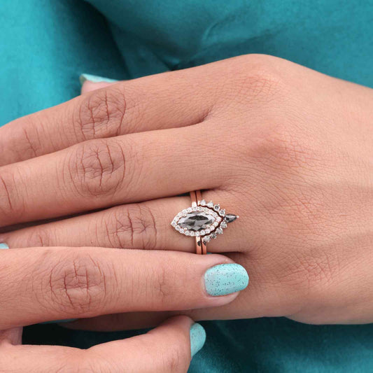 Rose Gold Halo Bridal Set – Marquise Diamond & Band