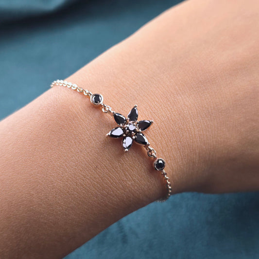 Delicate Black Diamond Bracelet – Rose Gold Gift for Her