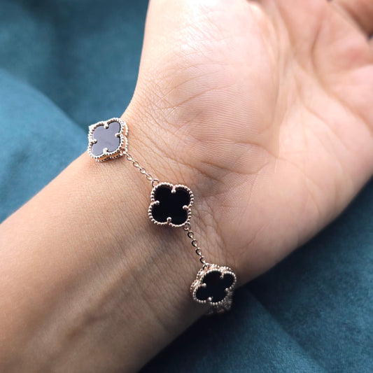 Black Onyx Clover Jewellery Set – Rose Gold Trio for Timeless Style