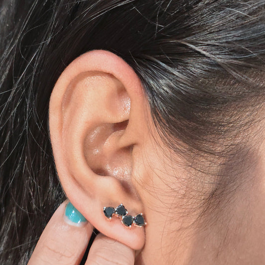 Asymmetrical Rose Gold Huggies – Black Diamond Charms