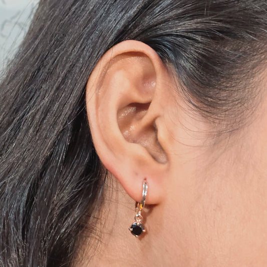 Black Diamond Drop Hoop Earrings – Elegant Rose Gold Style