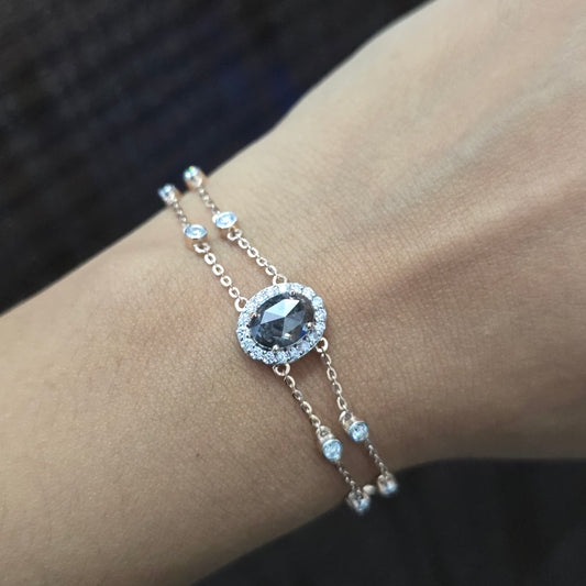 Double Chain Oval Cut Diamond Bracelet | 10K Gold Plated | Dainty Jewelry Gift for Women