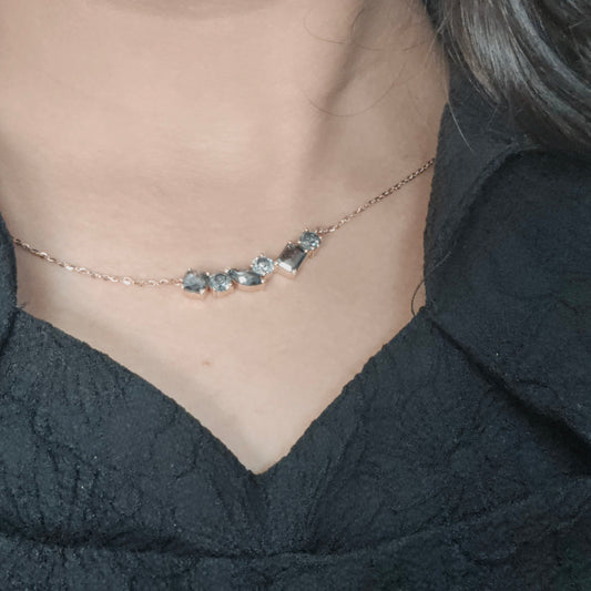 3.90 CT | Salt and Pepper Diamond Necklace | Multi Shape Gold Pendant | Handmade Minimalist Jewelry | Gift for Her