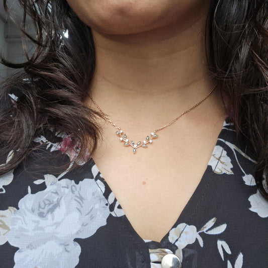 Art Deco Inspired Diamond Necklace Leaf & Vine Design in Gold - Statement Jewelry Gift