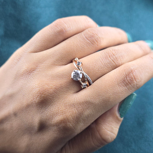 Raw Elegance – Round & Princess Salt and Pepper Diamond Ring