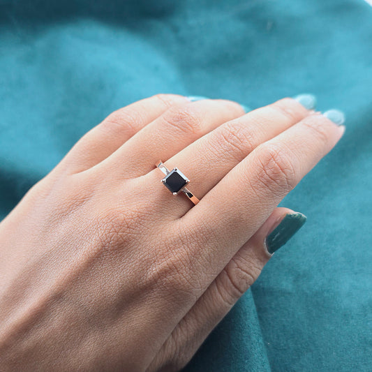 Modern Emerald Cut Black Diamond Ring With 10k Metal