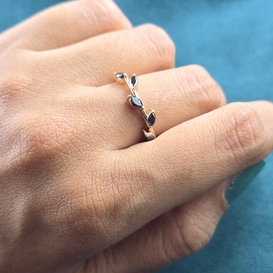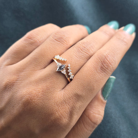 Modern Black Diamond Wedding Ring in Gold – Unique Kite-Cut Alternative Bridal Ring