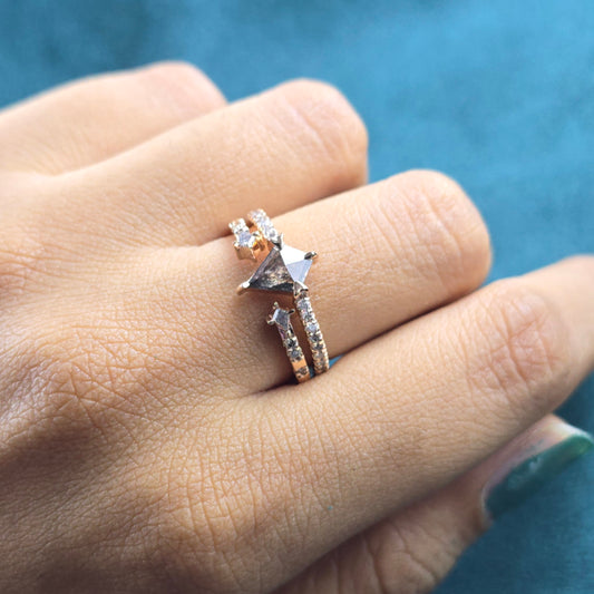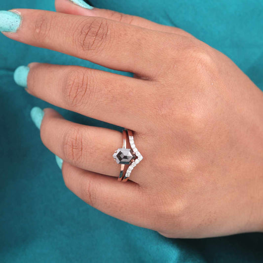 Hexagon Salt & Pepper Bridal Set – Rose Gold Chevron Rings
