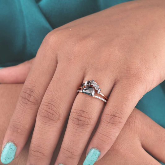 Salt & Pepper Ring Set in Rose Gold – Half-Moon & Baguette
